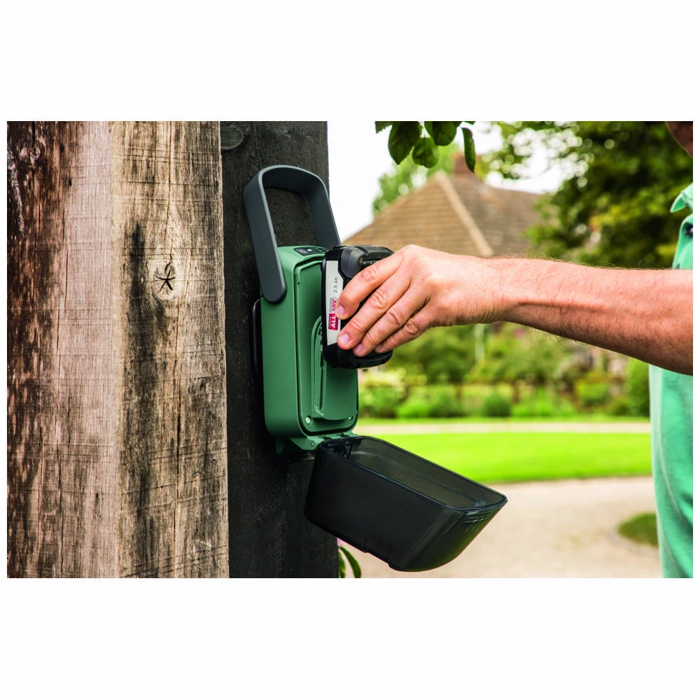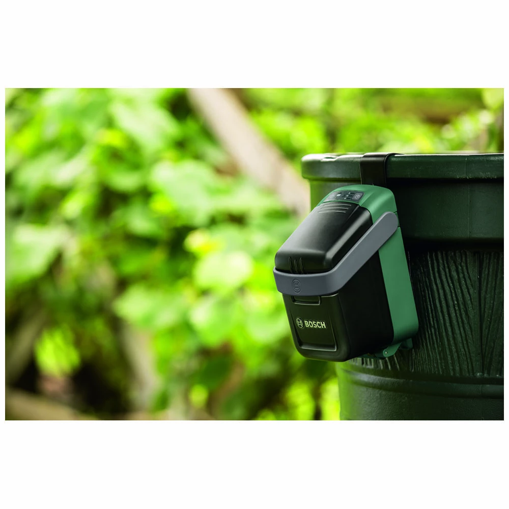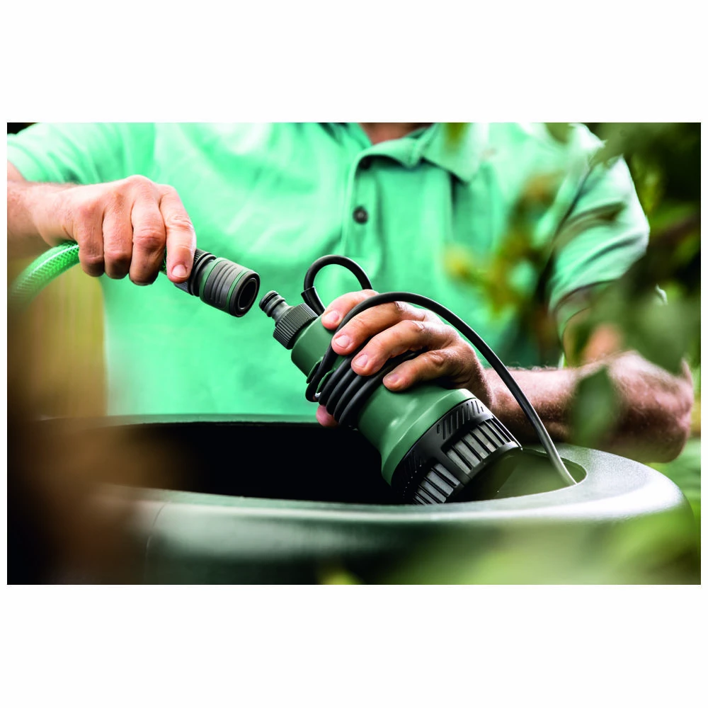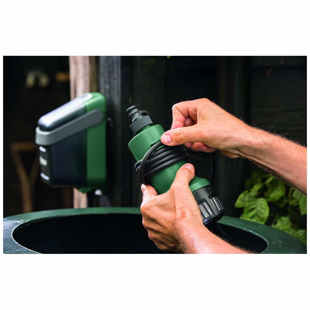 Good for the environment and better for plants – the cordless GardenPump 18 works easily with all styles of garden rainwater tanks and provides faster and more effective watering around the garden. Start by setting up the Battery Control Unit, which can be conveniently hooked right onto the tank or attached to the wall. Then simply submerge the Rainwater Pump in the tank. Next, attach a garden hose, up to 25 m long, and spray gun. This Rainwater Pump is perfect for natural and more enjoyable watering of flower beds and fruit and vegetables, or pots and planters. For perfectly green lawns, use this tool’s timer function and anti-siphoning connector with sprinkler and irrigation systems.