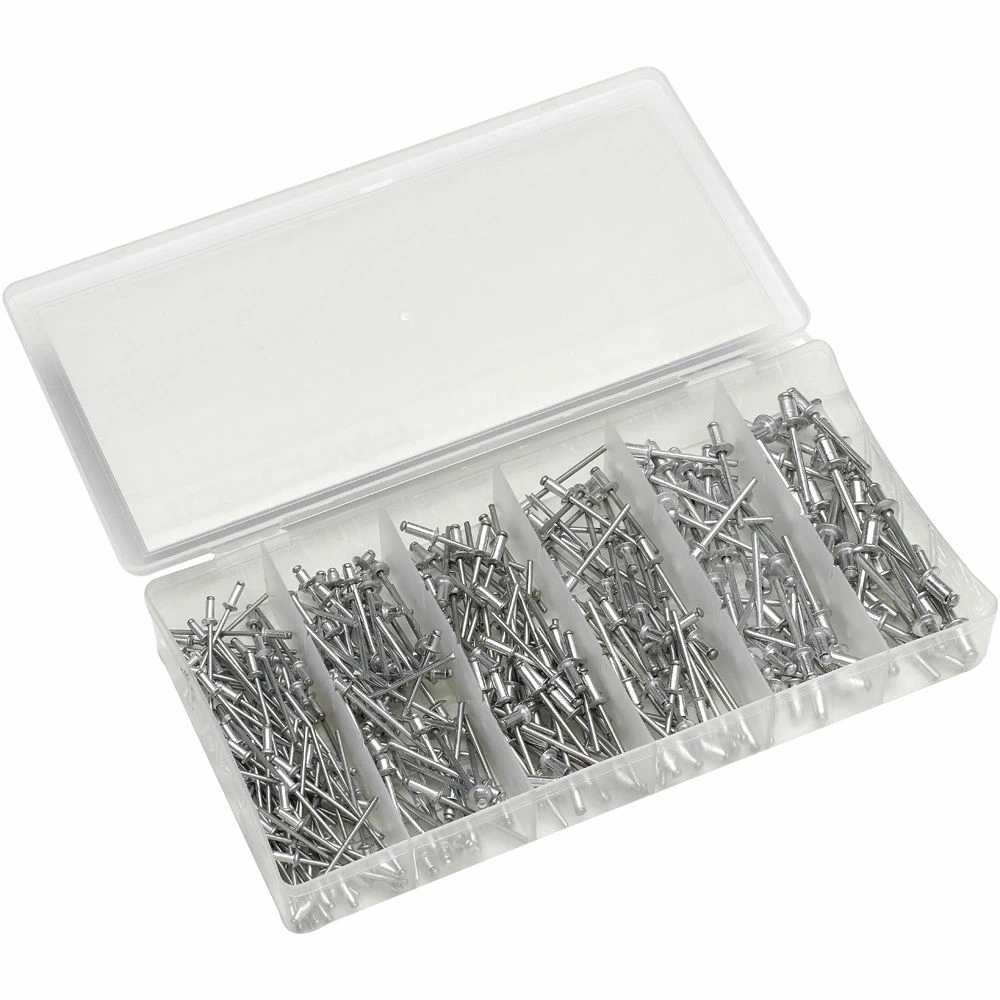 A set of 320 assorted aluminium pop rivets available in the following sizes: