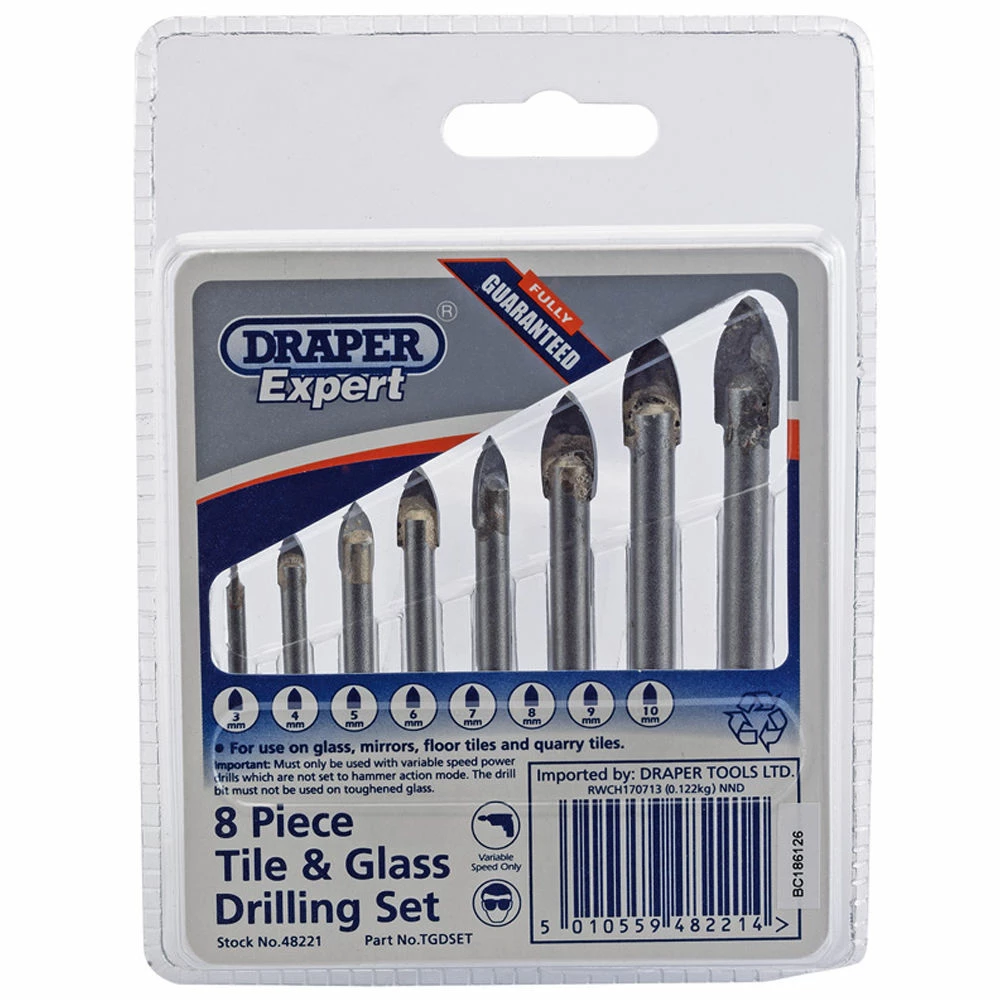 The Draper TGDSET Tile and Glass Drilling Set is designed for use on glass mirrors, floor tiles and quarry tiles.