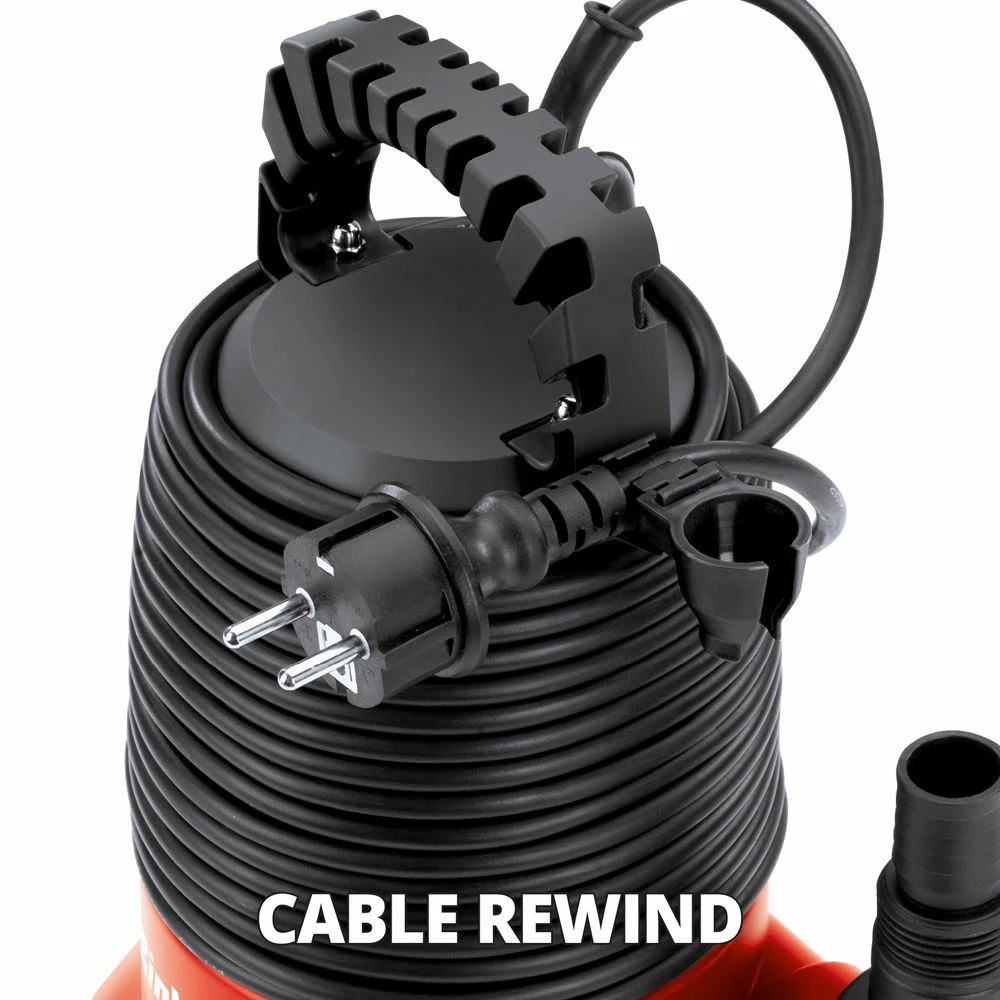 With a rating of 370W, the pump achieves a delivery rate of up to 9’000 litres of dirty water an hour. A variable float switch can be used to set this robust pump to continuous operation, or to a specific ON and OFF switching level.