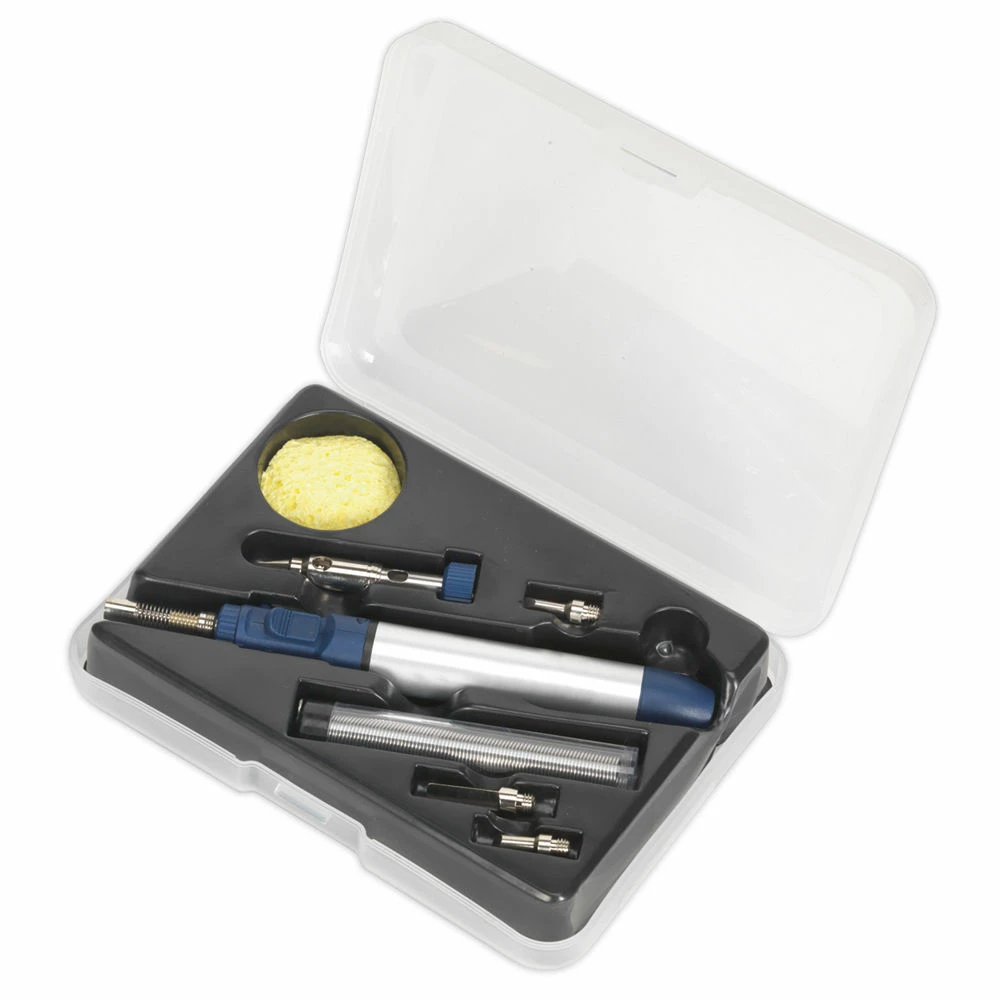 Portable and lightweight, suitable for heating, soldering and shrinking plus many other applications. Powered by Butane (lighter fuel) and features an adjustable heat control ranging up to 1300°C. Fitted with retractable stand. Requires separate ignition. Supplied in storage case.