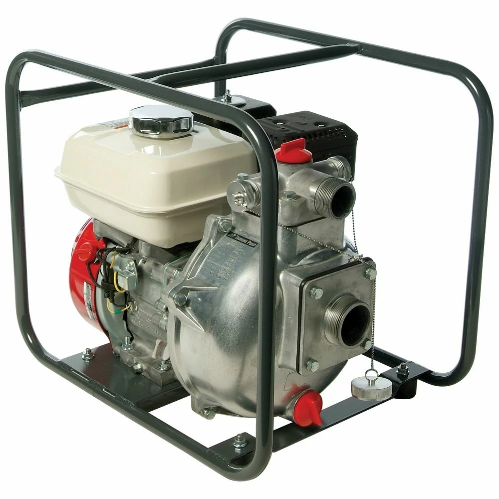 TEF3-50HA pump: Mobile, lightweight self-priming unit, capable of very high pressure. Ideal for fire-fighting and irrigation. Fitted with a three outlet (2 x 1″ & 1 x 1½”) for multi user supply, blanking caps and a easy carry frame. Powered by GXH160 Honda engine with oil alert for engine protection. Supplied with hose connectors, strainer and hose clips.